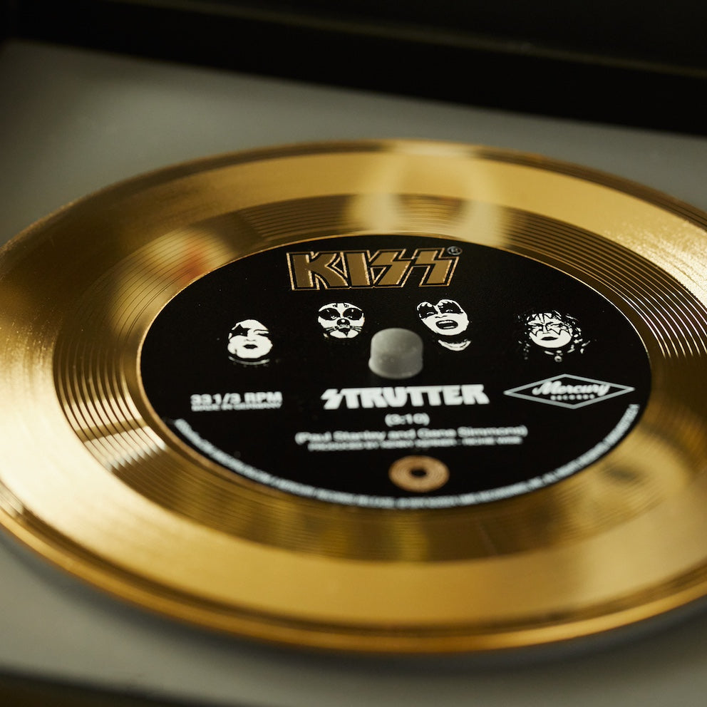Each gold-plated record comes with a display box with a crystal glass window, a book with an exclusive letter from Gene, a record mat, a hand-numbered certificate, and a microfiber cleaning cloth, encased in an outer box honoring the song’s album art with intricate finishing and details.