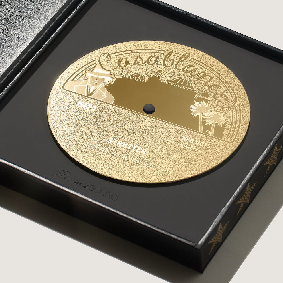 The B-side is a prized piece of art—a one-of-a-kind engraving of the original Casablanca Records 7-inch single label in gold.