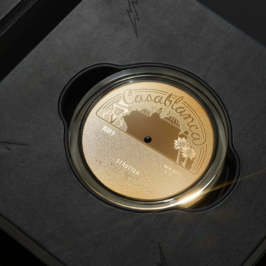 The B-side is an engraving of the original Casablanca Records 7-inch single label in pure gold in a proof quality finish.